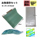 魚の大きさに合わせてカットできるカッター付きグリーンパーチミニロール(幅300mm)と魚用ナイロン袋、キッチンタオルのセット販売です。ミニロールの長さは20m・50mがあります。グリーンパーチと魚用ナイロン袋をセットで使用することでヒレで袋が破れにくくなります。ネピアのキッチンタオルは吸収性に優れています。